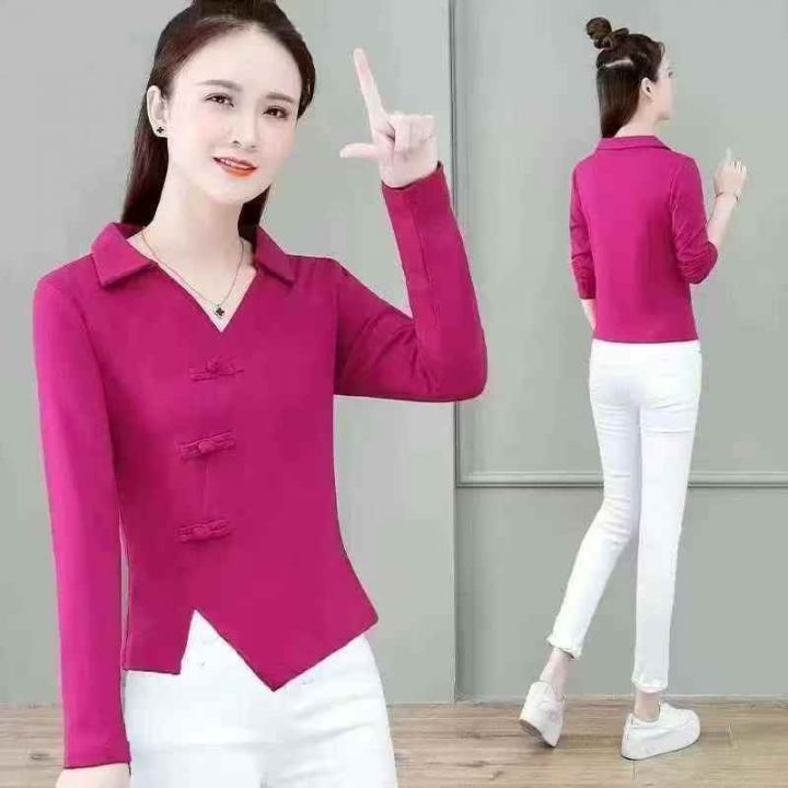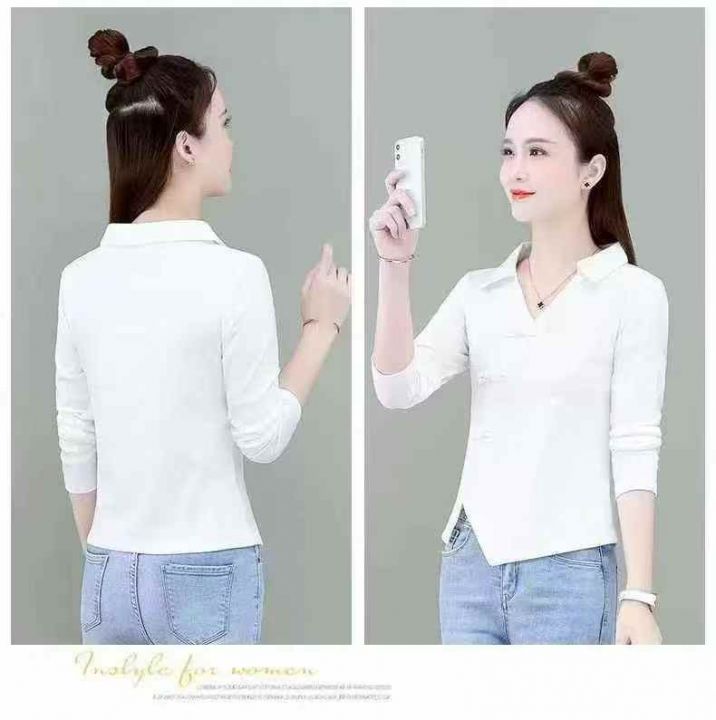 棉春秋季2025新款polo衬衫长袖T恤女不规则短款修身上衣打底衫,115件,(款号5025#21)独立包装,分货加0.5