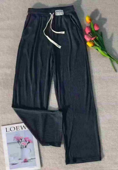 女装百褶条休闲直筒冰丝裤,面料很好,垂感十足,440...