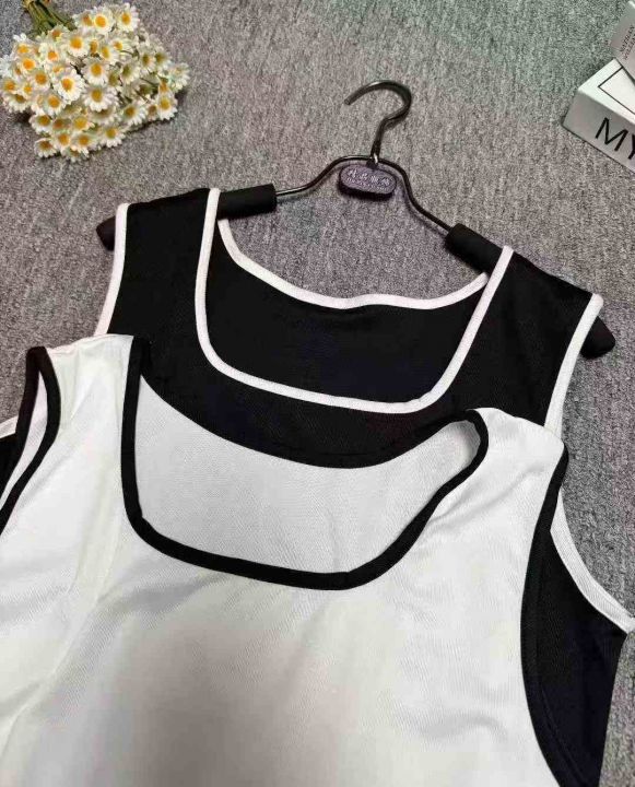 大码辣妹风无袖法式方领背心吊带小衫,整款两色,高弹...