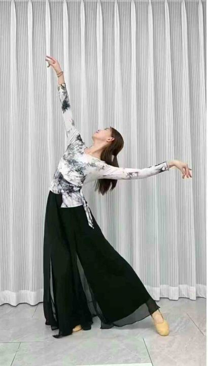 2025新款舞蹈练功服上衣长袖扎染系带收腰显瘦国风古典现代舞服装,205件,1-4码(型号5012#4)独立包装,分货➕1