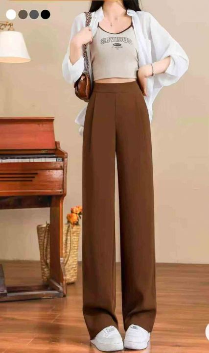卡其色窄版阔腿裤女早春季2025新款高腰显瘦西装裤休闲垂感直筒裤,140条,(型号5019#18)均码,独立包装,超大弹力裤腰。