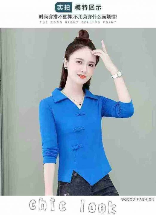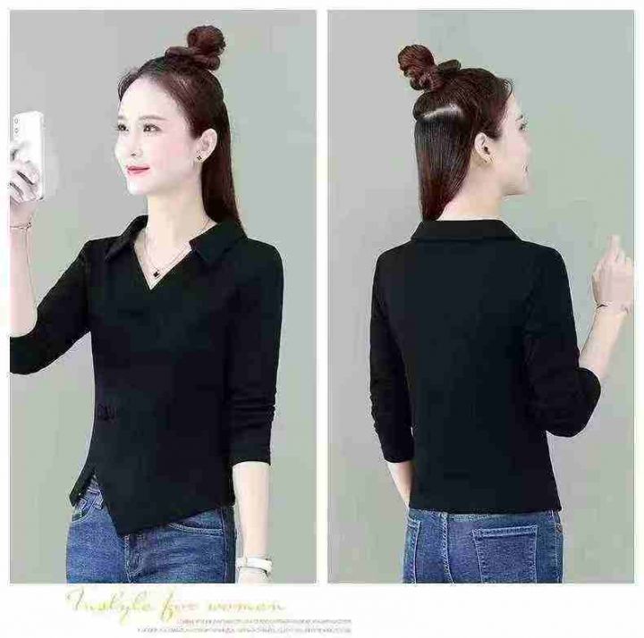 棉春秋季2025新款polo衬衫长袖T恤女不规则短款修身上衣打底衫,115件,(款号5025#21)独立包装,分货加0.5