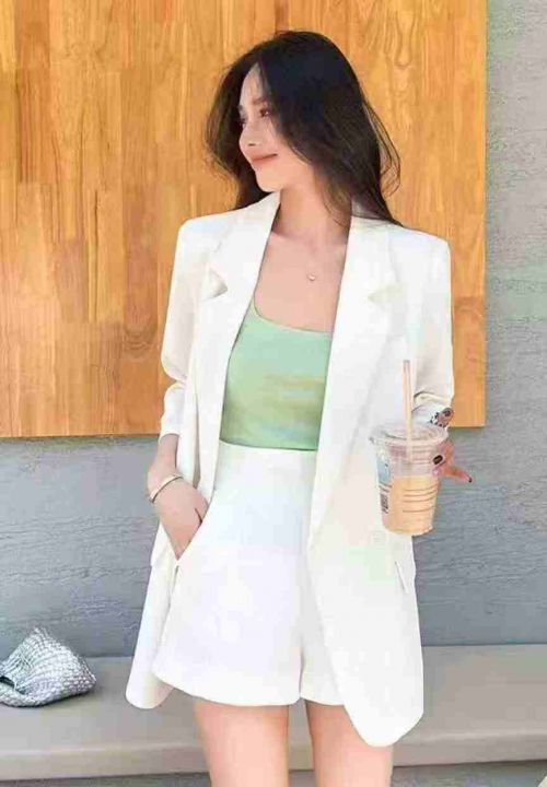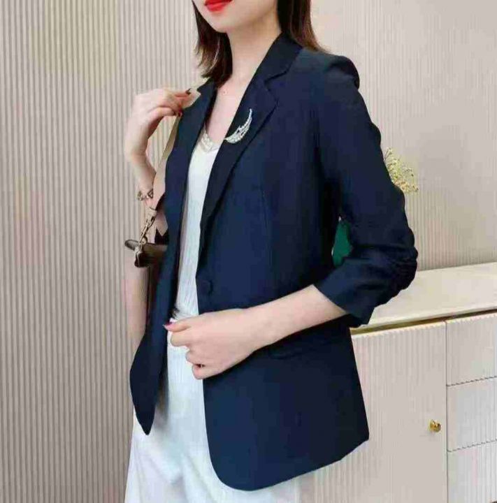 简约气质通勤OL~三粒扣抽褶收腰上衣显瘦七分袖西装外套女秋,107件,码数1-3,独立包装,货品干净,白色为主。(货号:5016#16)