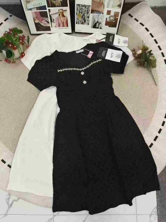 法式菱格镶钻方领高腰修身高级时尚连衣裙 数量112件 码数M--4XL 整款两个色 独立包装带吊牌 货品整洁质佳