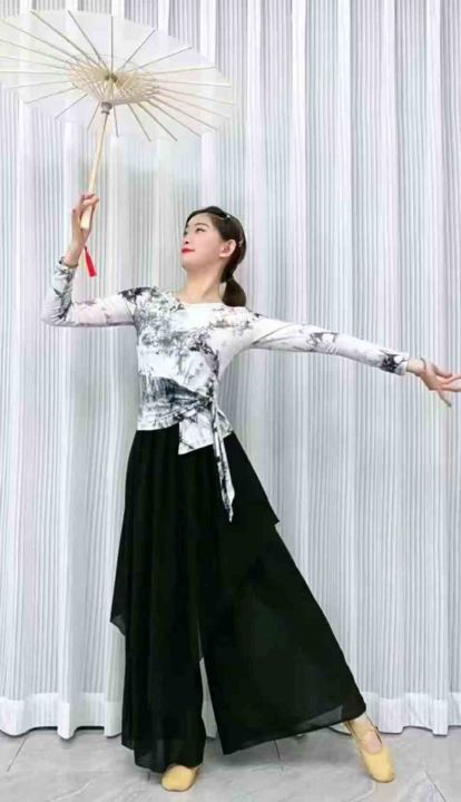 2025新款舞蹈练功服上衣长袖扎染系带收腰显瘦国风古典现代舞服装,205件,1-4码(型号5012#4)独立包装,分货➕1