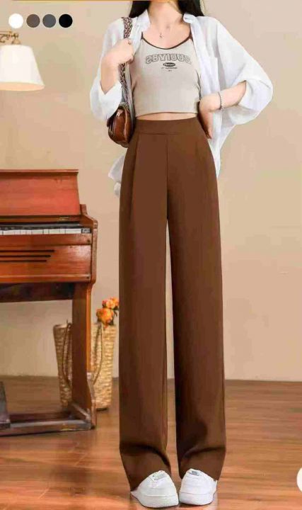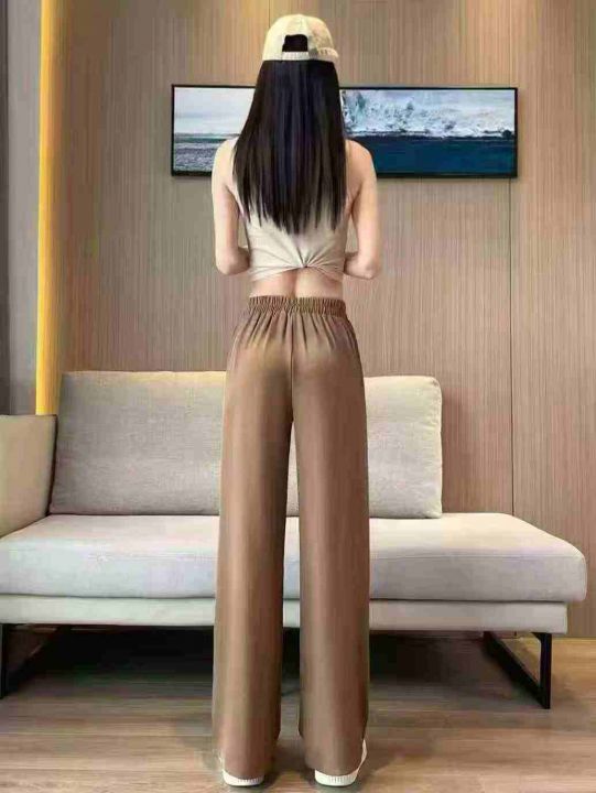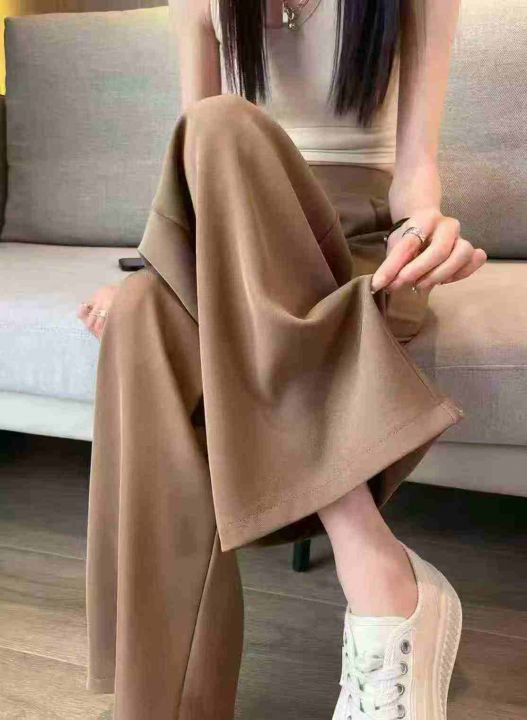 卡其色窄版阔腿裤女早春季2025新款高腰显瘦西装裤休闲垂感直筒裤,140条,(型号5019#18)均码,独立包装,超大弹力裤腰。