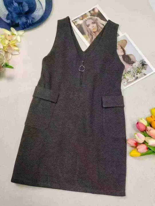 590条单件春装新款宽松显瘦无袖连衣裙女时尚气质v领毛呢背心裙中长款 独立包装 M一2XL 9.9清 分货加一