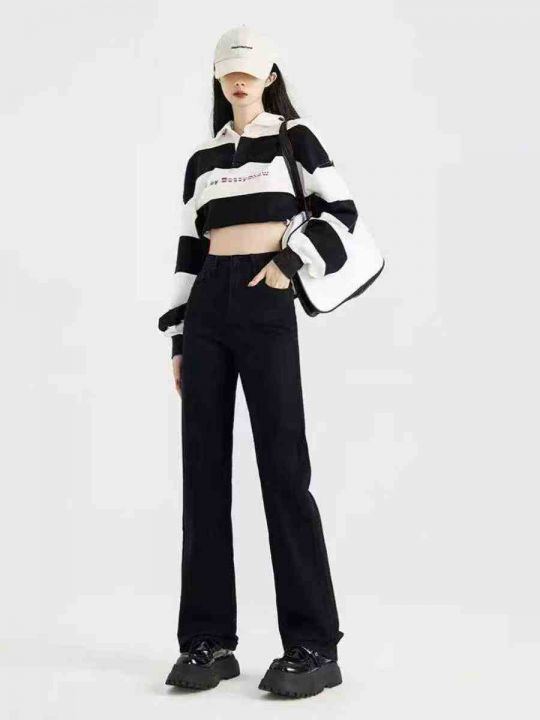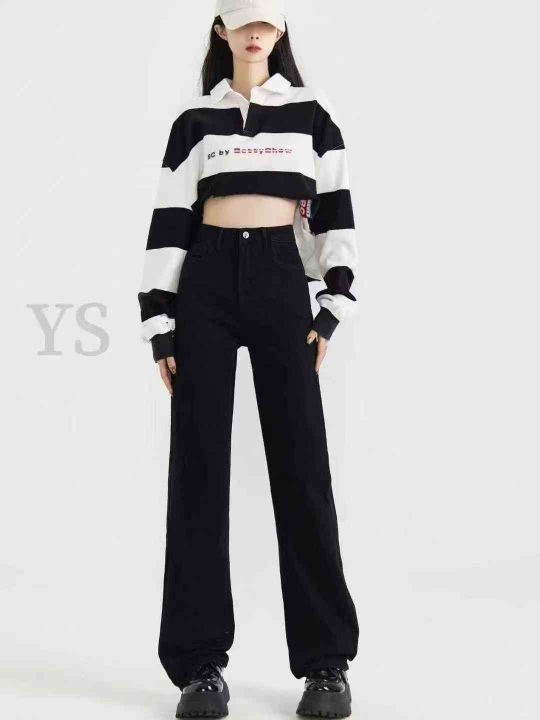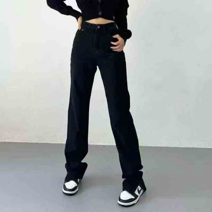女士百搭显瘦宽松直筒牛仔裤高腰窄版阔腿裤拖地裤800...