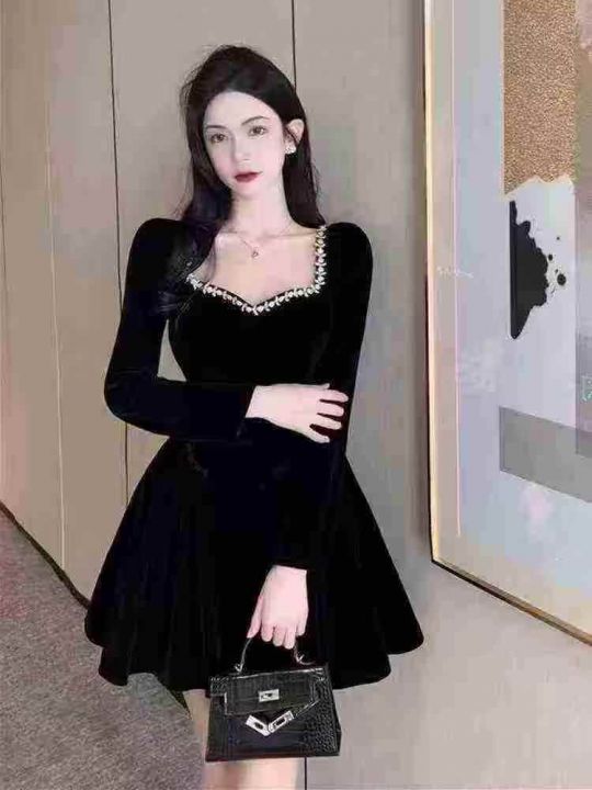 全清8.8法式复古赫本丝绒连衣裙女秋冬显瘦气质女神范...