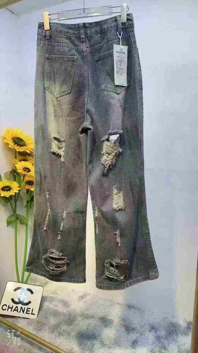 复古扎染废土风破洞女牛仔裤水洗垂感阔腿拖地裤,码数S-XXL,面料舒服柔软,独立包装货品干净,400条左右全清16.8