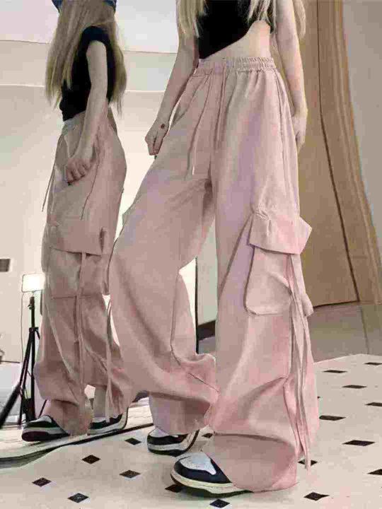 美式复古工装裤女款高腰新款百搭宽松多巴胺阔腿个性运...