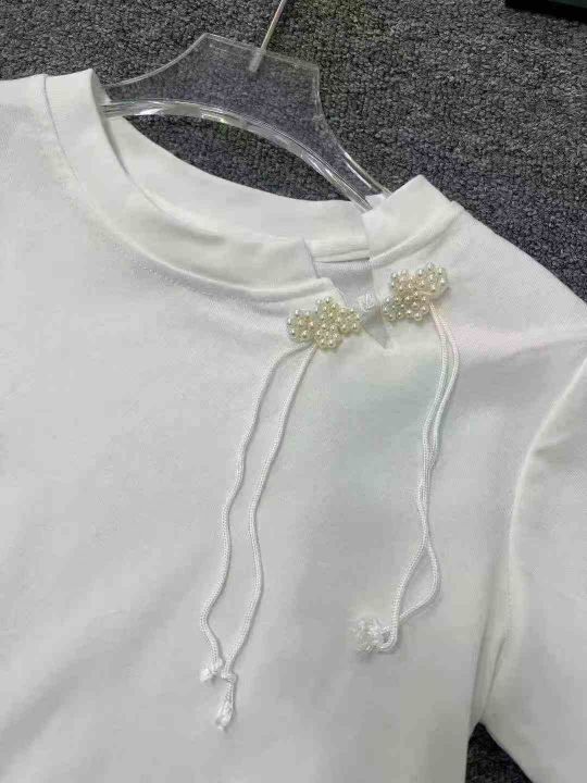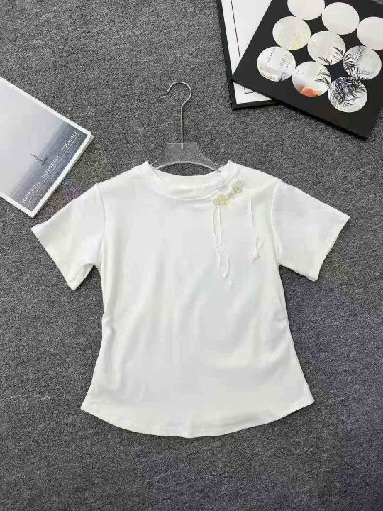 ☕️新中式短袖白色T恤女穿搭休闲百搭短款盘扣上衣200...