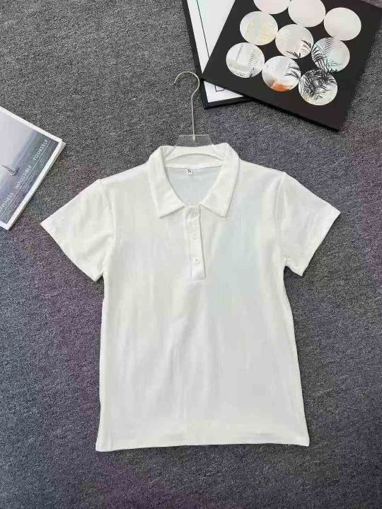 ☕️美式POLO衫新款夏季纯白色T恤女立领正肩短袖百搭上衣414件全清6.8元,分货7.8元,单款白色,S到XXL,纯棉辣妹T恤,10件一包装[庆祝][庆祝][庆祝]