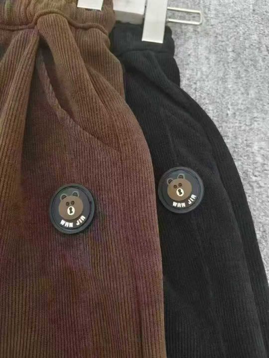 100条品牌男女童装加厚灯芯绒束脚长裤,码数110-160,整款两个色,内里包边,做工质量很好,独立拉链包装带吊牌。