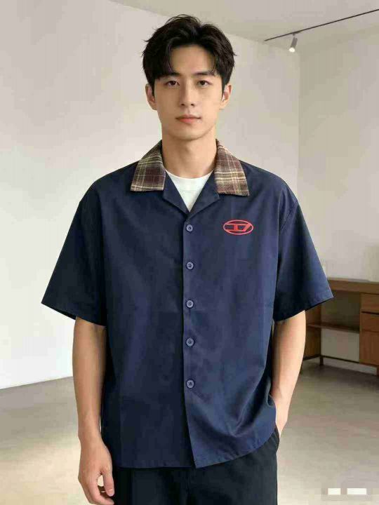 240件左右轻熟风美式复古格领撞色男士短袖衬衫,做工品质好,尺码S-3XL,独...