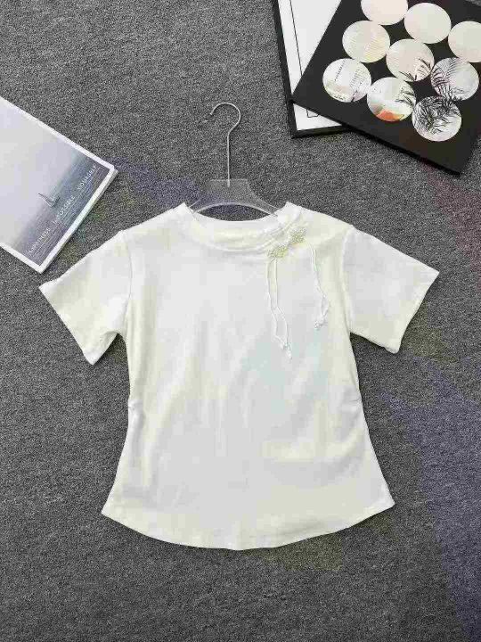 ☕️新中式短袖白色T恤女穿搭休闲百搭短款盘扣上衣200件全清7.8元,S到XL,单款白色,独立包装,高弹力纯棉辣妹T恤[庆祝][庆祝][庆祝]