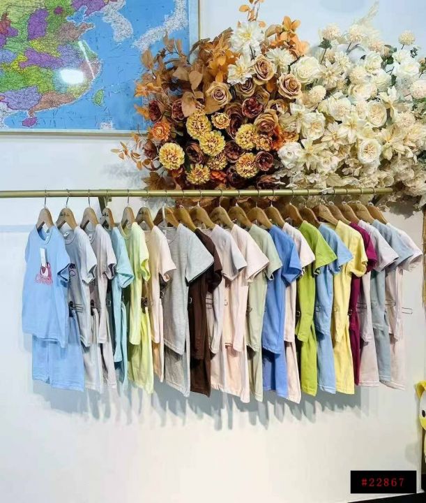 童套装[太阳]7.8元,5000套纯棉糖果色宽松时尚休闲运动短袖短裤童套装,面料柔软舒适透气,颜色图案多,独立包装,带吊牌@_@