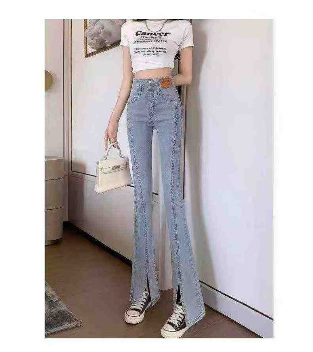 ☕️弹力开叉牛仔裤女高腰紧身显瘦拖地微喇叭裤226条全清11.8元,码数XS到X...