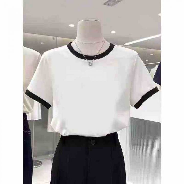 ☕️纯棉基础款正肩短袖t恤女宽松显瘦撞色拼接上衣潮4...