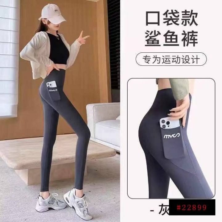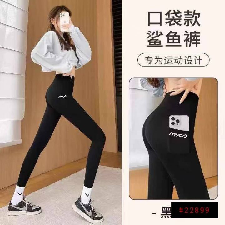 下身鲨鱼裤[太阳]6.8元,1300件!没有黑色!鲨鱼芭比紧身长裤高腰收腹侧口袋薄款外穿瑜伽速干运动打底裤女,高弹力,独立包装@_@