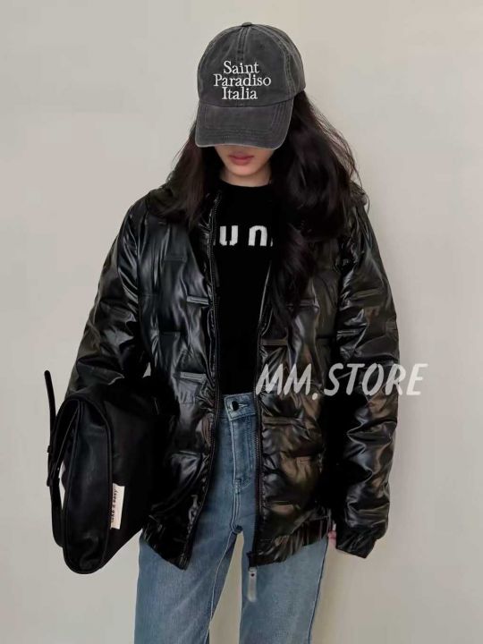 高端洋气亮面棉服女冬季甜美抽绳显瘦外套,图片两个款...