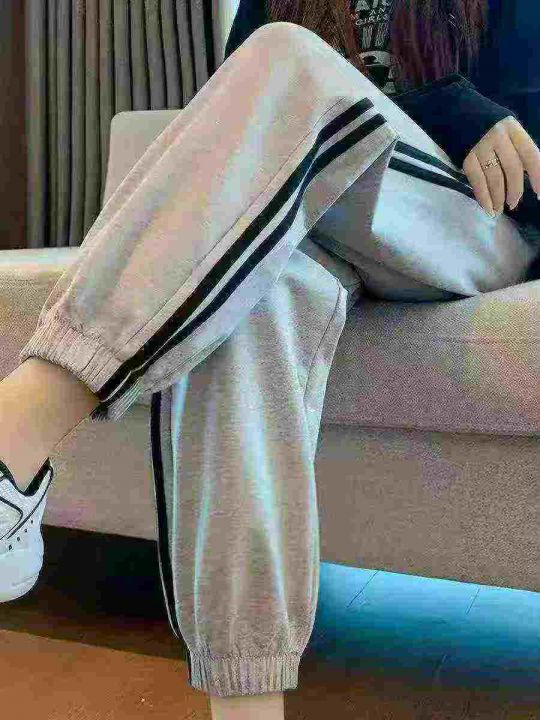 全清7.860件三条杠束脚卫裤男女春夏新款宽松运动裤直筒休闲哈伦裤 单款两色...