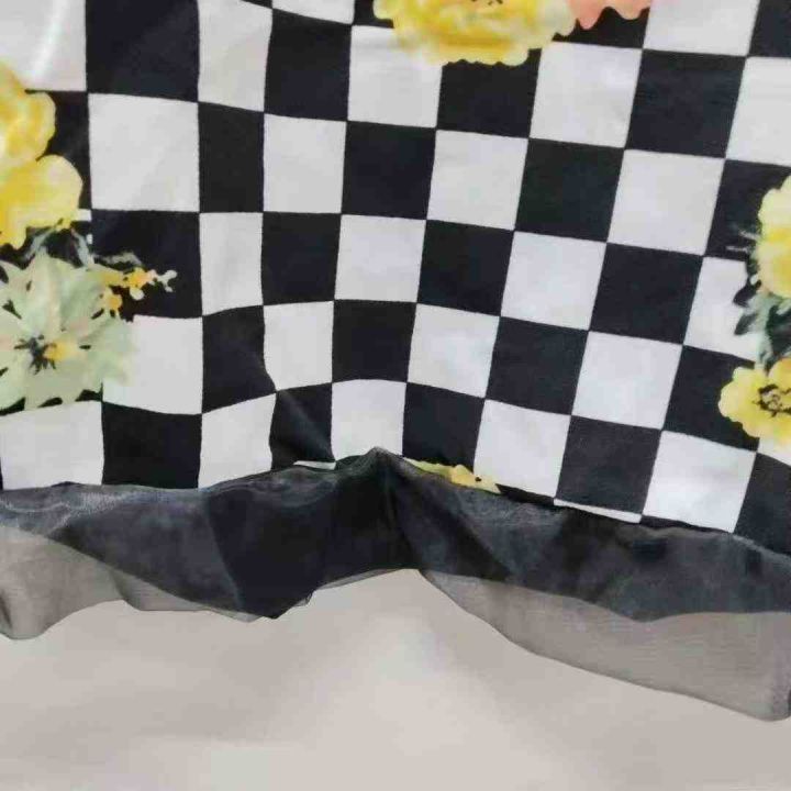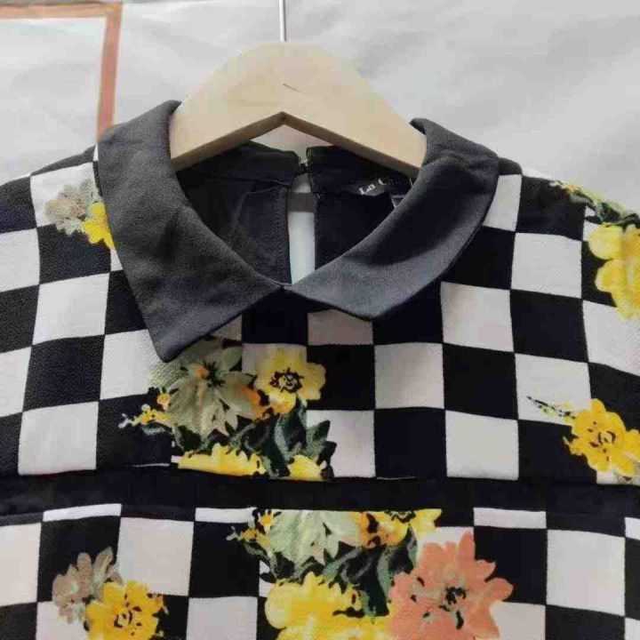 2.5元秒杀[發][發] 印花女装气质修身格子连衣裙,白色格子轻微染色,独立包装,码数36-38-40,数量956件左右。