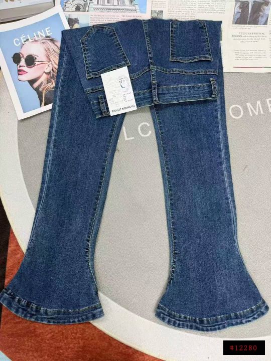 弹力蓝色马蹄女士喇叭显瘦修身拖地牛仔裤,单款单色,数量150,26-32码,福利价13.8秒杀(601·886#)@_@