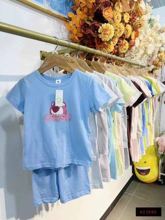童套装[太阳]7.8元,2800套,纯棉糖果色宽松时尚休闲运动短袖短裤童套装,面料柔软舒适透气,颜色图案多,独立包装,带吊牌@_@