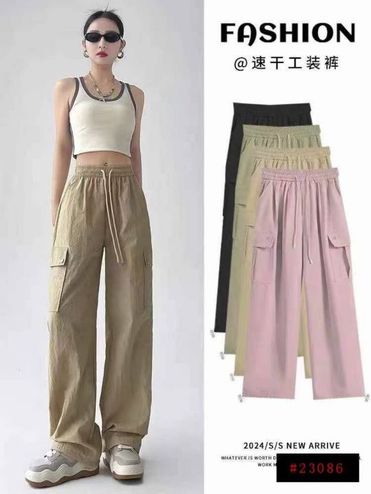 下身工装长裤[太阳]25元,新货,1200件春夏季抽绳松紧腰工装装高腰直筒多口袋宽松运动速干休闲工装裤,糖果色[哇],裤脚抽绳束口设计,一裤多穿️阔腿️束脚[色],品质,独立包装,带吊牌@_@