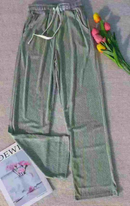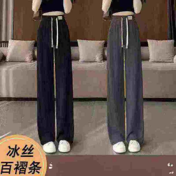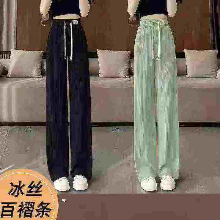 女装百褶条休闲直筒冰丝裤,面料很好,垂感十足,440...