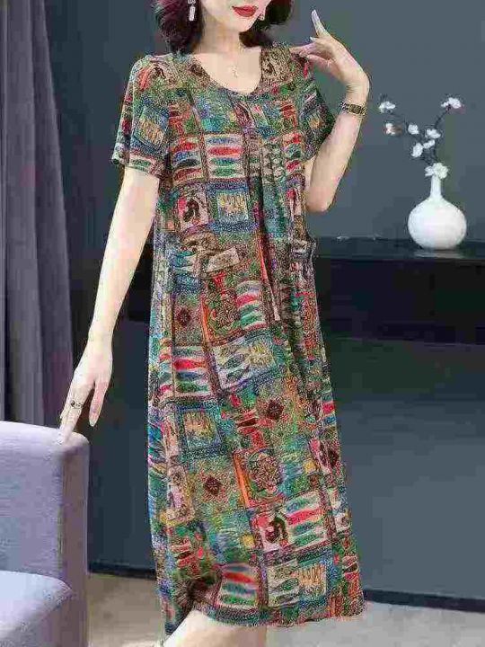 妈妈夏装连衣裙女夏季宽松裙子加肥加大码装,图片款图片色,图6图7为主,2到6码,独立包装货品干净,1660件,4.9清,分货加1