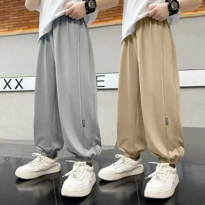 全清价7.8夏季热卖中大童男女同款冰丝休闲束脚运动裤,独立包装,整款三色...