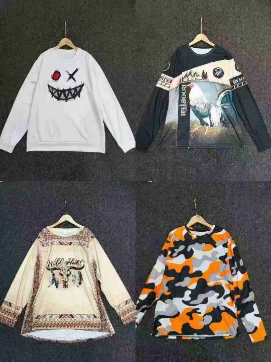 外贸3D印花长袖男女款卫衣T恤,大版宽松型后领包边 独立包装 码数S-5XL,数量16000件 全清2.9 分货加0.5