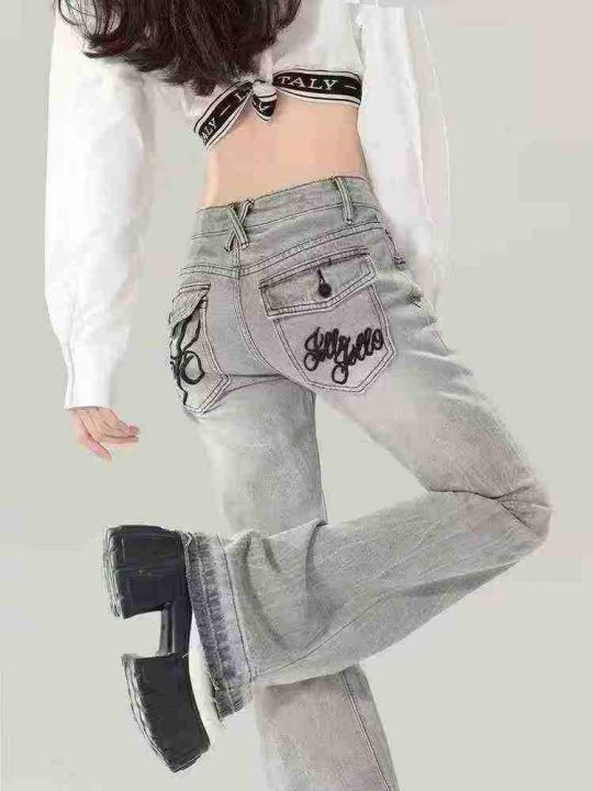 ☕️美式辣妹微喇叭牛仔裤女新款显瘦刺绣拖地马蹄裤子...