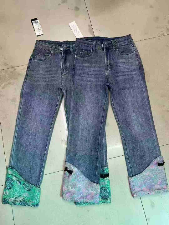 ☕️高弹力新中式女装国风拼接牛仔裤高腰显瘦直筒窄版阔腿裤子2300条全清18元,不分货,码数XS到XXL,有清单,正品独立包装,裤脚单款2色[庆祝][庆祝][庆祝]