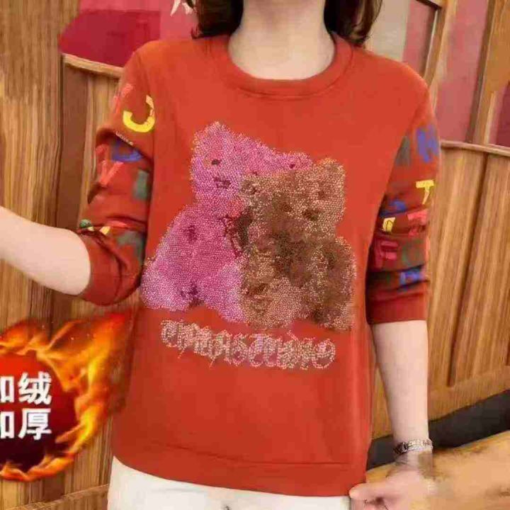 加绒加厚烫钻小熊洋气卫衣休闲卫衣,独立包装,宝宝绒,码数L-XXL(L胸围100厘米,能穿120斤内),大货黑色为主,数量1633件,分货加1,货号130#64