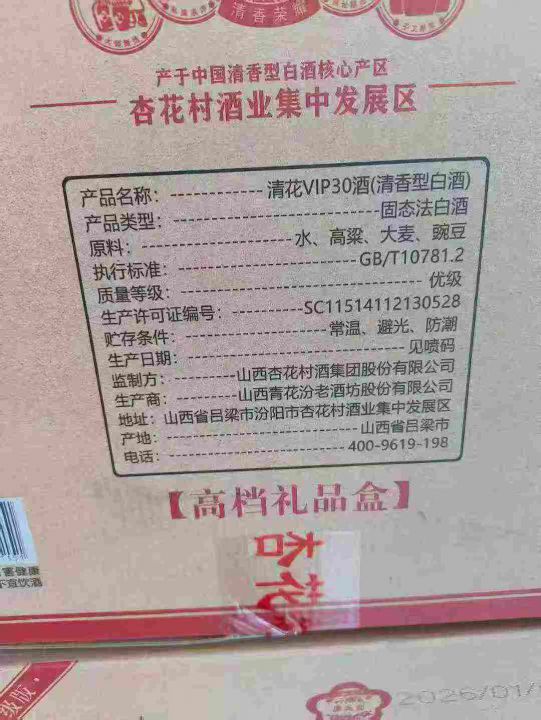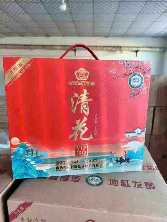 春节送礼太合适了!新到100箱清花VIP--30礼盒酒,全清私聊,10箱起发170元,一箱起发180元,一箱3提,一提2瓶,带手提袋,2026年生产,53度清香型白酒,山西杏花村集团出品!。 货号:29195