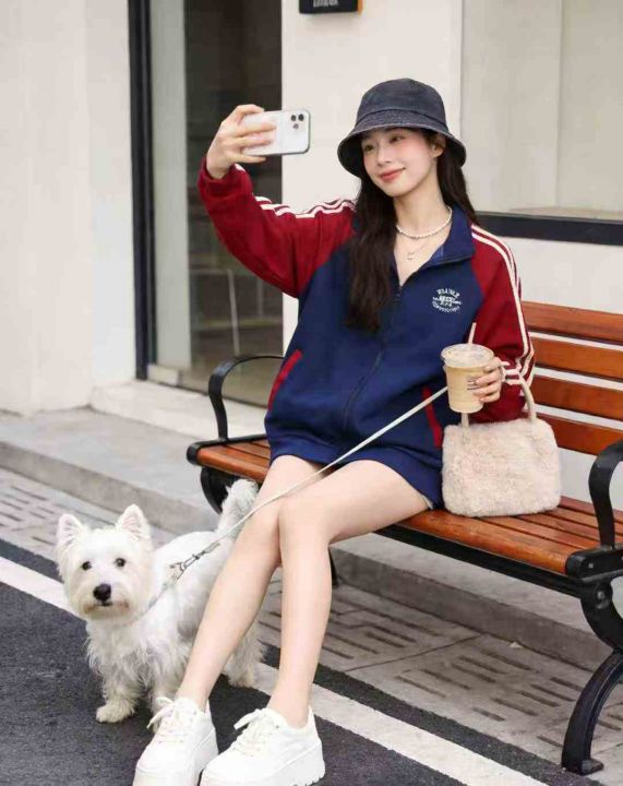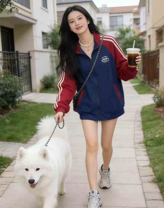 美式复古学院风辣妹春秋季短款拉链开衫女条纹拼色立领休闲外套潮,独立包装,码数XL XXL,数量50左右,全清10.8元,分货➕1