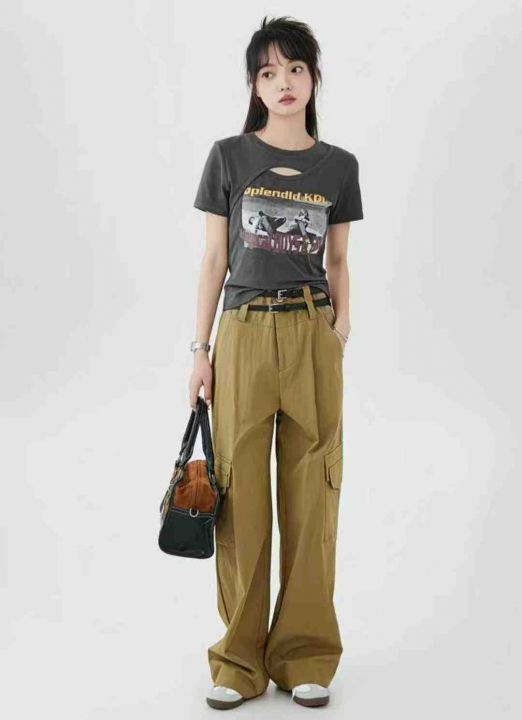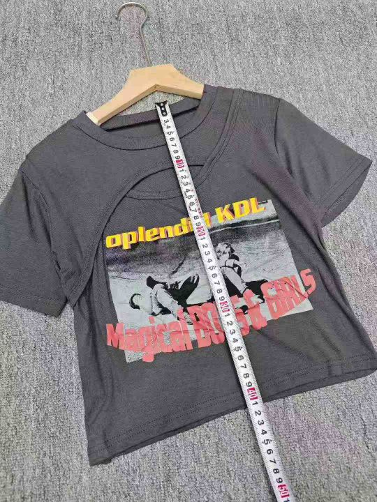 4.5清电商仓回收192件美式复古辣妹镂空印花设计感短袖...