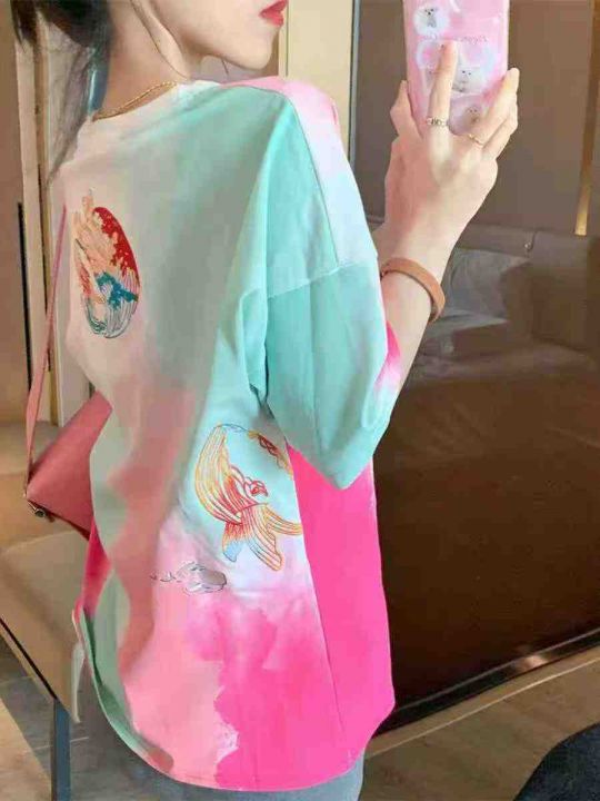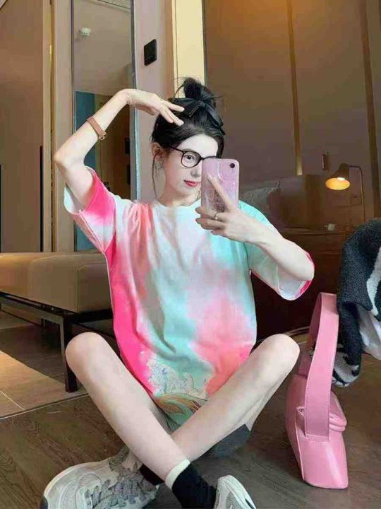 电商仓回收212件多巴胺扎染彩色渐变纯棉短袖T恤,码数S-XL。面料柔软有弹性,宽松版型,独立包装。分货➕1