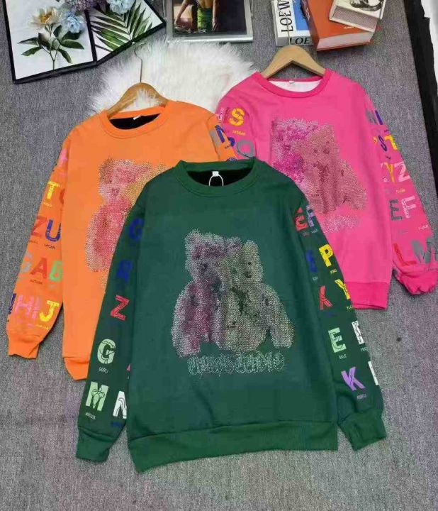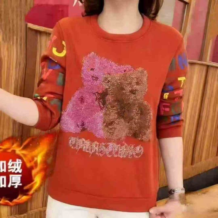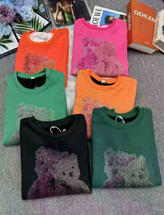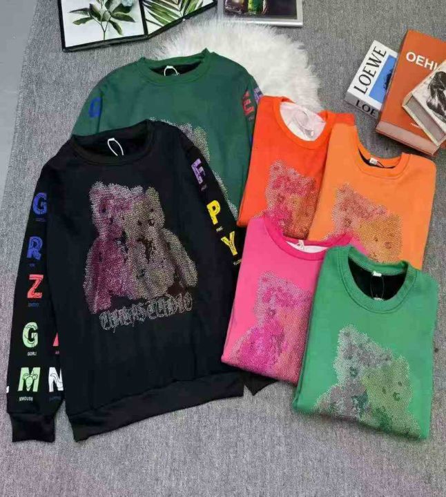 加绒加厚烫钻小熊洋气卫衣休闲卫衣,独立包装,宝宝绒,码数L-XXL(L胸围100厘米,能穿120斤内),大货黑色为主,数量1633件,分货加1,货号130#64