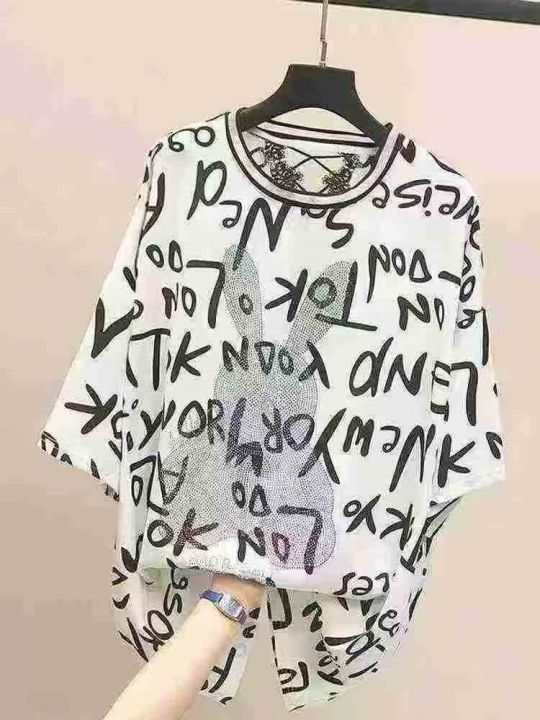 时尚烫钻短袖t恤女中长款夏韩版宽松ins潮露背上衣,独立包装,码数M-3XL,数量456件,大货白色为主,分货加1,货号114#15