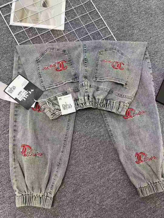 ☕️高弹力欧货牛仔束脚裤新款高腰阔腿牛仔裤女宽松刺绣牛仔裤251条全清11.8元,码数S到XXL,正品独立包装。