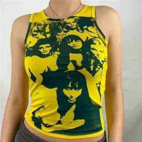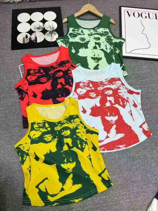 chic辣妹上衣 圆领修身短款复古撞色T恤 Y2K千禧风无袖印花背心夏,独立包装,码数XL-5XL,数量499件,全清3.8元,分货➕0.5
