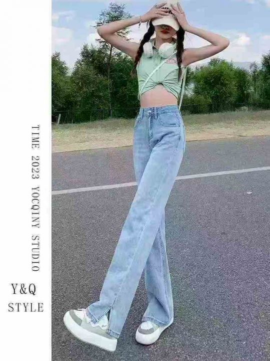 高弹力直筒牛仔裤女高腰宽松显瘦简约开叉阔腿裤75条全清12.8元,码数25-30...