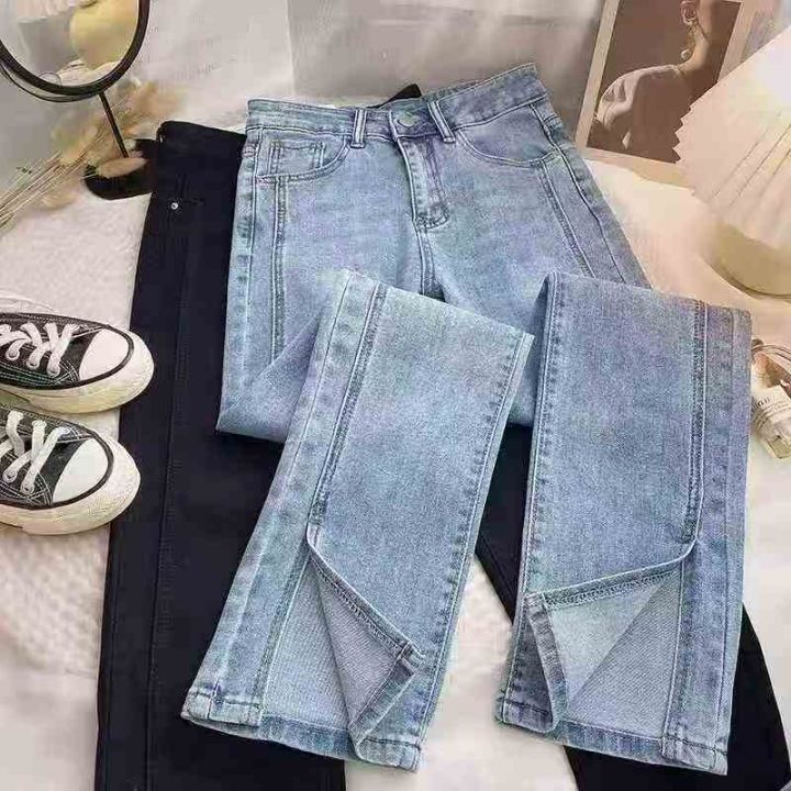 高弹力直筒牛仔裤女高腰宽松显瘦简约开叉阔腿裤75条全清12.8元,码数25-30...