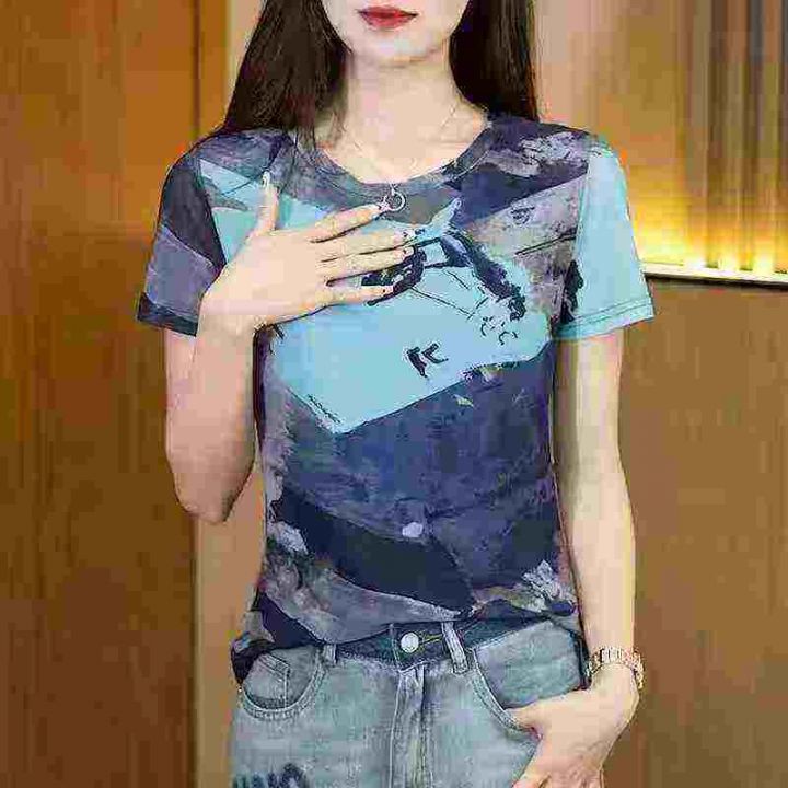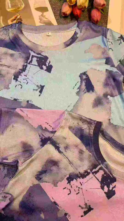 水墨画印花独特设计遮肉显瘦宽松百搭T恤,[爱心]1000件左右,兰色为主,码数L-4XL,穿90-150斤,[666]工厂原包装瑕疵,分货加0.5