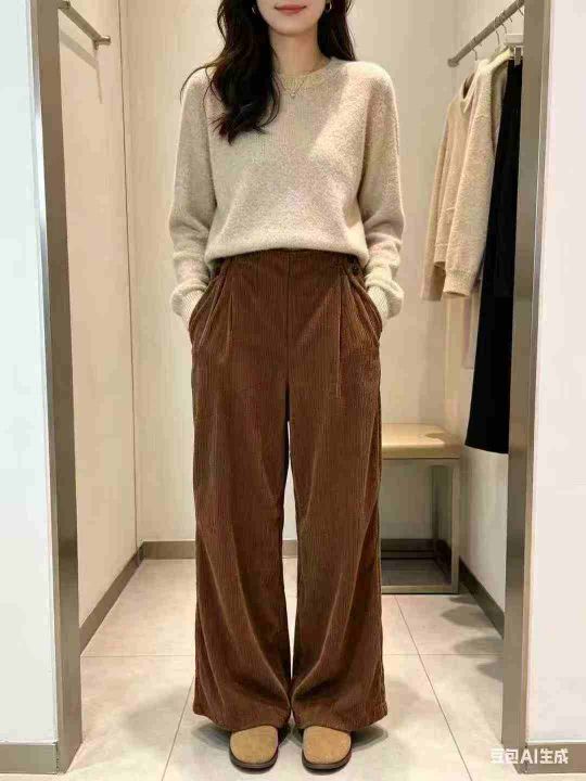 350条左右春季复古高腰坑条灯芯绒阔腿裤莫兰迪色系坑条垂感休闲裤,尺码S-2...