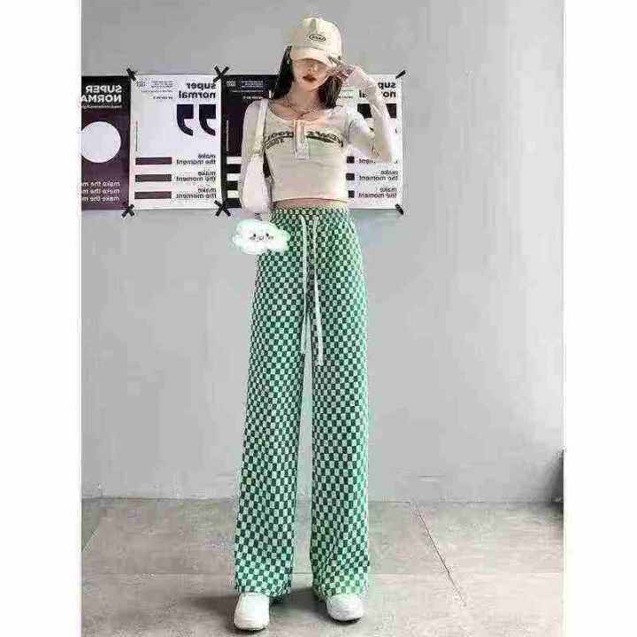 冰丝棋盘格裤子女夏季薄款高腰显瘦垂感休闲阔腿裤 有弹力 独立包装 码数1-5码 数量120件 全清6.8